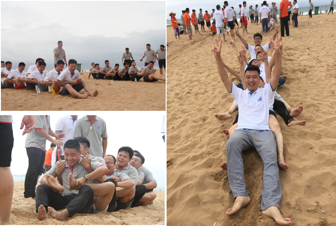 The golden beach activities include four events, beach dragon boat race, rock crossing, beach tug-of-war, and beach football. The beach dragon boat race, rock crossing and beach tug of war were held at the same time. Each champion enters the beach football match directly. The second team in each game decides the fourth team in the beach football match by drawing lots. Each project tests the team`s ability to cooperate, and the team`s indomitable spirit.