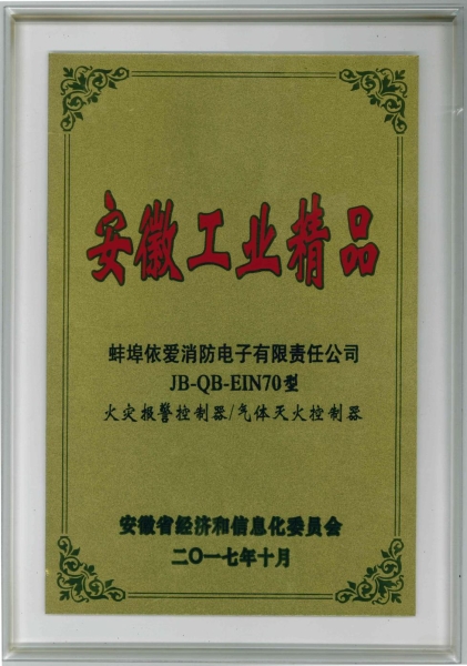 依愛(ài)消防N70火災報警控制器被評為2017年度“安徽工業(yè)精品”
