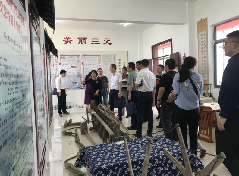 隨后,大家又在雷鳴書(shū)記的帶領(lǐng)下,來(lái)到三元社區黨員群眾活動(dòng)服務(wù)中心,參觀(guān)了三元鎮農耕文化館,零距離感受農耕文化。隊伍里的幾位小朋友顯得尤為興奮,一會(huì )兒瞧瞧鋤頭,一會(huì )兒摸摸蓑衣,文化館里的一切都讓他們覺(jué)得新奇有趣。見(jiàn)此情狀,丁書(shū)記與單副書(shū)記為大家邀請了文化館負責人向大家詳細介紹各種農具的歷史及作用,給大家上了一堂別開(kāi)生面的農業(yè)文化課。