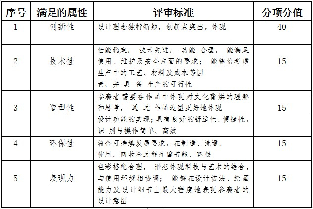 ② 作品在功能、結構、技術(shù)、形態(tài)、材料、工藝、節能、環(huán)保等方面有較大創(chuàng )新,同時(shí)應考慮設計方案的可實(shí)現性、可生產(chǎn)性;