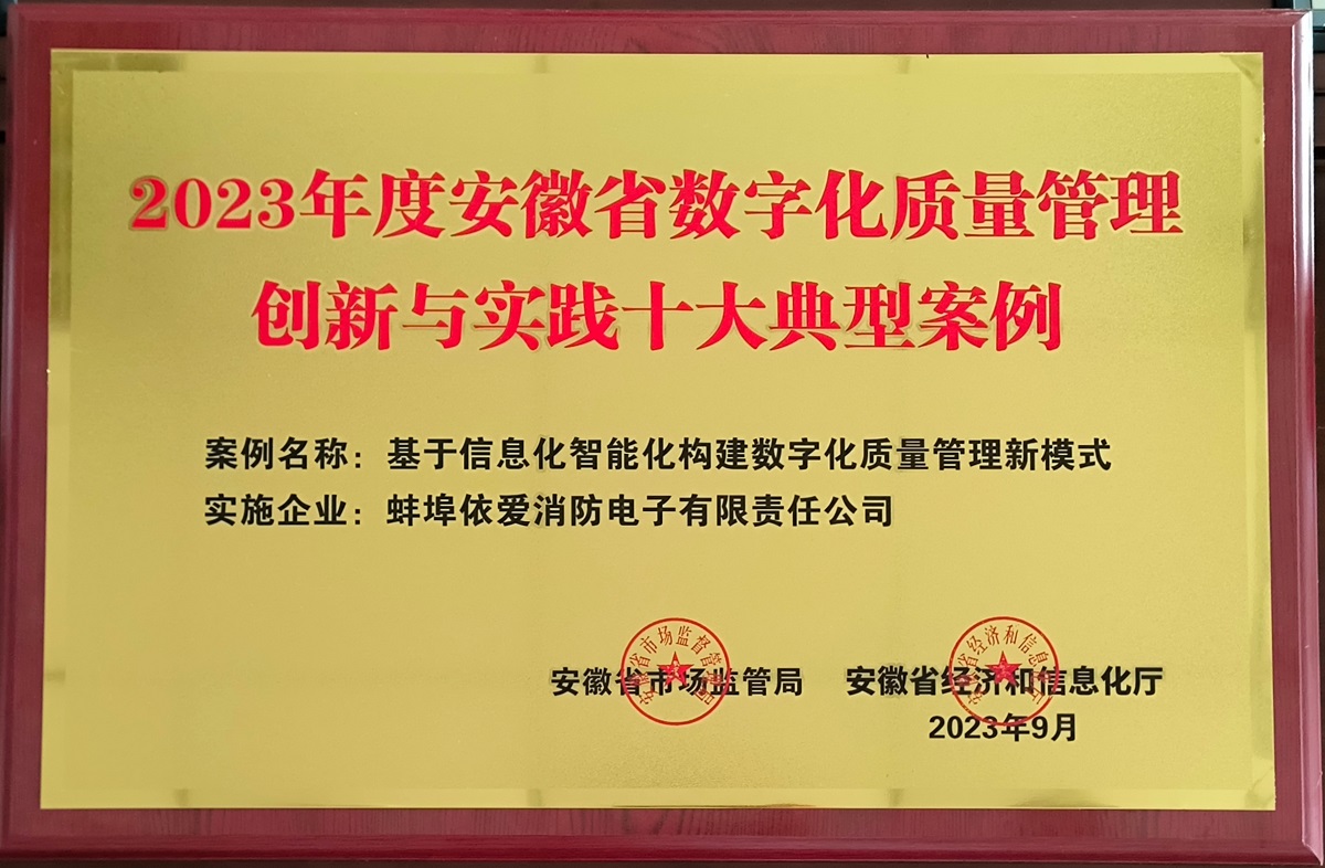 熱烈祝賀依愛(ài)消防入選安徽省數字化質(zhì)量管理創(chuàng )新與實(shí)踐十大案例