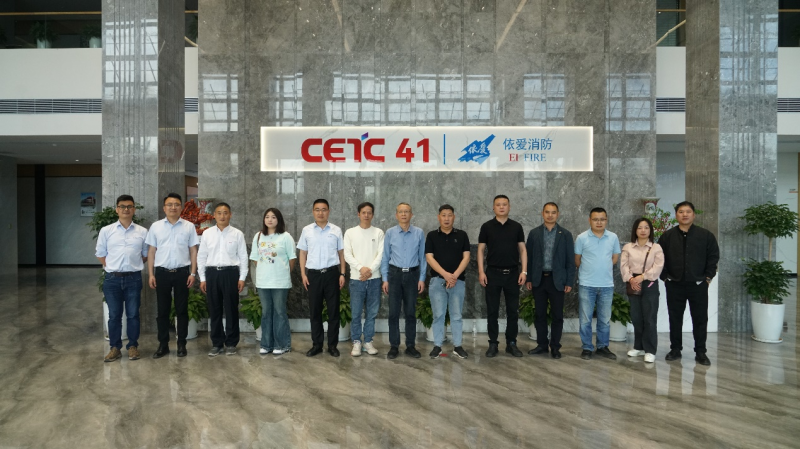 2025 年 4 月 25 日,江山消防協(xié)會(huì )浙江分會(huì )秘書(shū)長(cháng)、浙江浙開(kāi)建設有限公司總經(jīng)理徐開(kāi)可,四川中遠億建建設有限公司杭州分公司總經(jīng)理楊武一行到訪(fǎng)公司參觀(guān)指導。中電科第 40、41 研究所副所長(cháng)、消防公司董事長(cháng)丁峰,消防公司總經(jīng)理張曉雙等領(lǐng)導陪同。