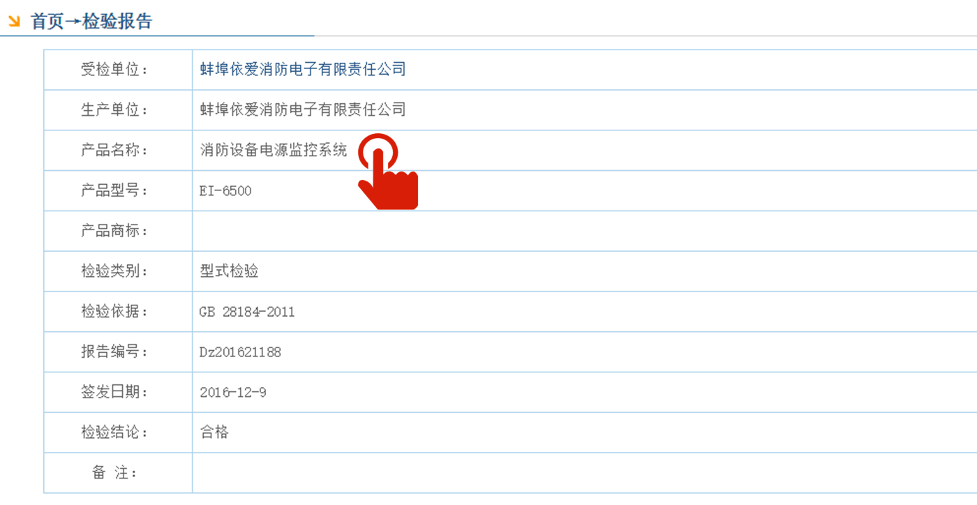 Nh?p tên c?ng ty ?? ???c h?i t?i "??n v? ???c ki?m tra", ch?ng h?n nh? "C?ng ty TNHH ?i?n t? Yiyi Ai Fire", và sau ?ó b?n có th? xem th?ng tin s?n ph?m c?a c?ng ty ?? v??t qua ki?m tra.